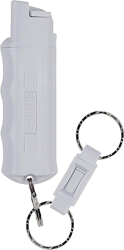 SABRE Defense Spray, 3-in-1 Formula Contains Max Strength Pepper Spray, CS Military Tear Gas & UV Marking Dye, Quick Release Key Ring for Easy Carry, Finger Grip for More Accurate Aim, 0.54 fl oz