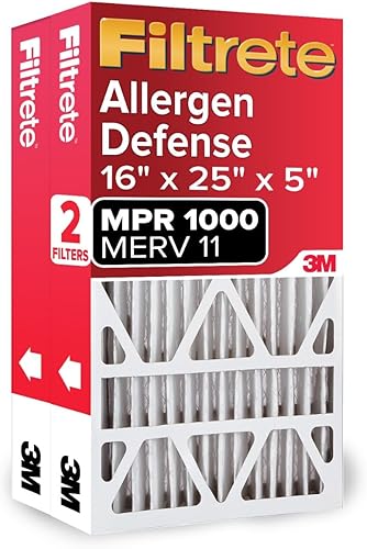 Filtrete 16x25x5 AC Furnace Air Filter, MPR 1000, MERV 11, Fits Lennox Devices, Allergen Defense, Electrostatic Air Cleaning Filter, 2-Pack (actual size 15.63 x 24.74 x 4.31)