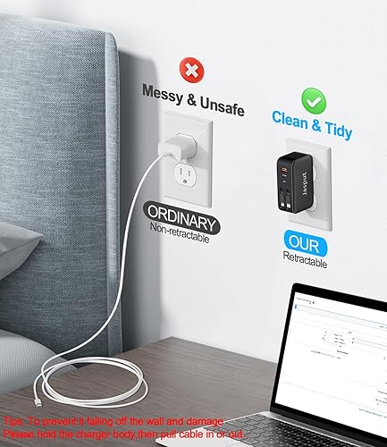 【Revolutionary GaN6 Technology】Slow charging ? overheating? The retractable charger usb c adopt high quality chips and advanced GaN6 technology materials. It generates less heat,charges faster and more stable than traditional charger block. Built-in overcharge, overcurrent, overvoltage, short circuit and other protection to protect your equipment.
