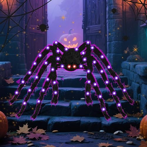 50 Zoned LEDs, Eerie Dark Look: This Halloween Decoration Light-Up Spider has 58 LEDs: 2 red for scarlet eyes (spooky "predatory gaze" at night) and 48 purple on 8 legs (like "will-o'-the-wisps" in dark). It’s more eerie than single-color decor, fitting Halloween’s "dark spooky" theme.