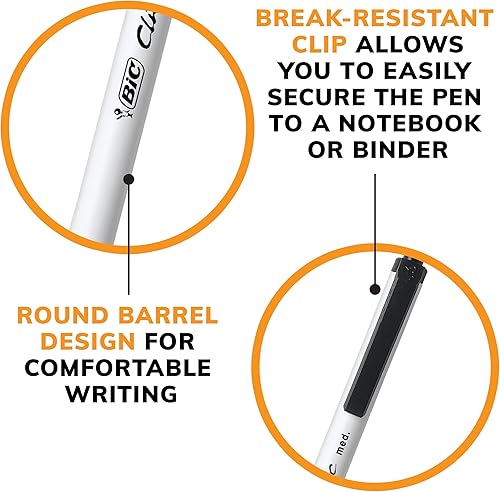 These writing pens have a break-resistant plastic clip that easily attaches to pockets and notebooks