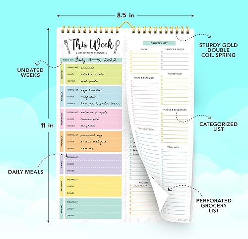 EASY TEAR-OFF GROCERY LIST - Plan, tear, and shop. With the perforated feature of the meal plan notepad, you can make your next trip to the store easier. This categorized weekly menu planner pad & weekly meal planner for fridge allows easy shopping.