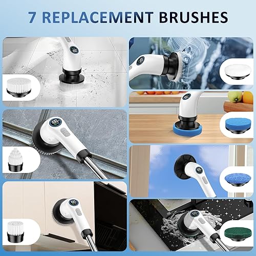 Electric Spin Scrubber 2025 Upgraded: For those with back or knee issues, bending to clean can be torture. The shower scrubber extends to three lengths, eliminating the need to bend or kneel to scrub bathtubs and floors. Simply grip it, and it handles all cleaning tasks for you! Additionally, with its built-in large-capacity rechargeable lithium battery, one charge lasts up to 100 minutes