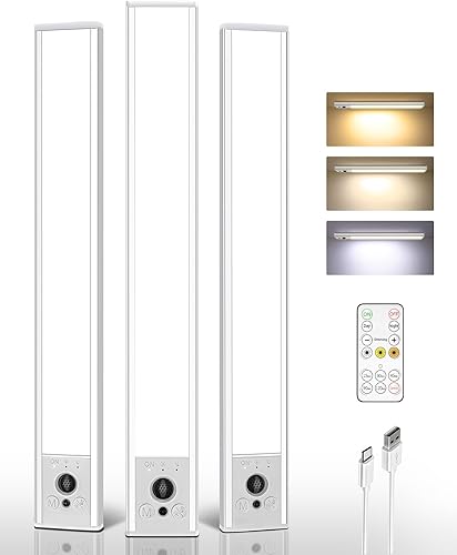 Rechargeable Under Cabinet Lights Wireless: This 2400mAh rechargeable under cabinet lighting lasts 15-45 days on Motion Sensor Mode (depends on how often you use) and 12 hours on Always-On Mode at 100% brightness. Don’t worry about wiring, available outlets or battery replacement like other styles, It can be easily recharged via type-C cable. Fully recharges in just 3 hours—no frequent charging needed!Grade A+ lithium-polymer cells provide high energy density, reliable performance, and long cycle life. (Please fully charge before first use)