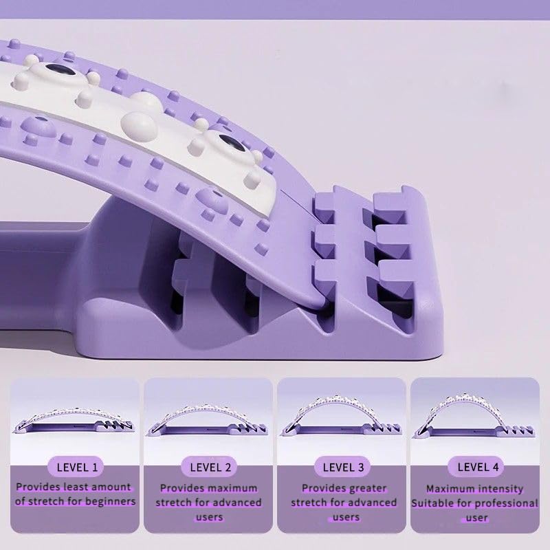4-in-1 Solution: Stretcher Chiropractic Aid - It's like having a personal chiropractor at home! This versatile tool not only stretches your spine but also acts as a deep tissue stretcher to loosen tight muscles. The arched design mimics professional chiropractic techniques, helping to realign your vertebrae and crack your back safely to relieve stiffness.