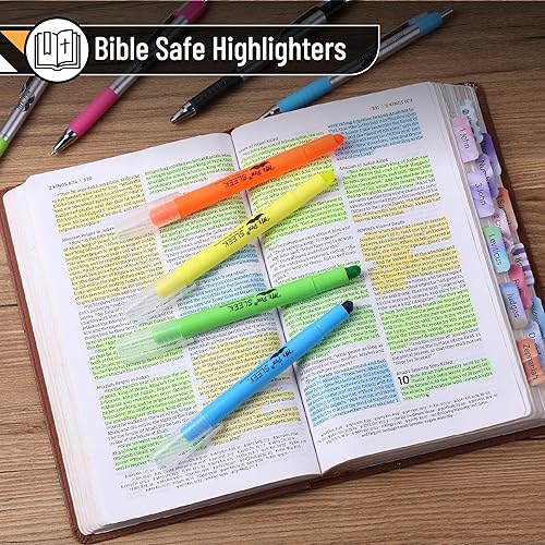 Package Includes: 4 Non-Bleed Fine Point Pens (0.7mm), and 4 Gel Highlighter/Bible Highlighter Non-Bleed