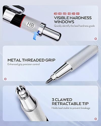 Ergonomic, Comfortable Design :The full-metal body provides ideal weight balance for fatigue-free writing and drawing or sketching, It brings you more effective and high quality tasks. The lead advances easily at the touch of a click. There is a sharpener in the cap of 2.0 mm mechanical pencil.