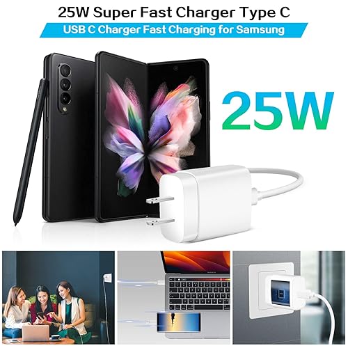 [25Watt Samsung Charger Fast Charging Block] 25Watt USB C Samsung Wall Charger for Samsung Power Delivery Super Fast Charging Using Highly Efficient Components and an Advanced Chipset,Our Power Delivery 3.0 Technology is Perfectly Compatible With Galaxy S25/S24/S23 Ultra,With a Maximum output Power of 25Watt.It only Takes 30Min to Charge your Samsung Galaxy S25/S24/S23 Ultra From 0 to 60%, 5 Times as Fast as Standard USB Charger.