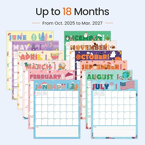 STEP BY STEP: Our 2025-2026 monthly wall calendar covers 18 months from October 2025 through March 2027 to help you keep track of daily tasks and long-term goals. At 14.5 inches wide and 11.5 inches tall, the 2026calendar is the ideal size for everyday use