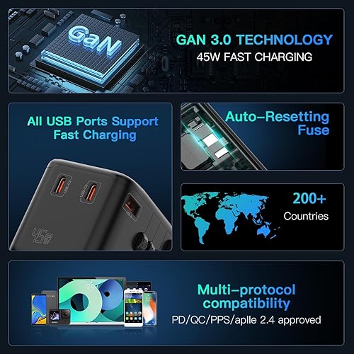 MULTI SAFETY PROTECTION & CERTIFIED: HAPOW travel adapter certified by FCC and CE. Double 10A fuse protect the devices from short circuit, overload, overcurrent, over temperature, etc. HAPOW ensures that your devices is fully protected while traveling