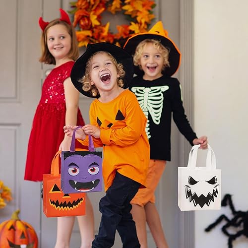 ✅Size: Each kid's Halloween Trick or Treat bags measure about 7.8x7.8x3.5 inches and are suitable for most Halloween party gifts such as Halloween snacks, cookies, jelly beans, candy, chocolate, cookies, flowers, etc.