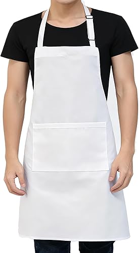Chef apron is pure white,the adjustable feature caters to various body types, guaranteeing a snug and comfortable fit for everyone. Its exquisite sewing makes it long-lasting